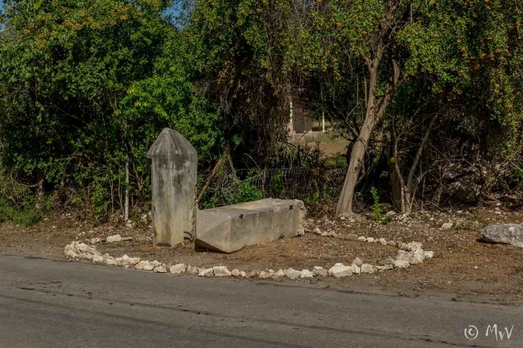 Dit is de enige echte overgebleven grenspaal tussen twee plantages. Er stonden er meer, maar die zijn verdwenen.