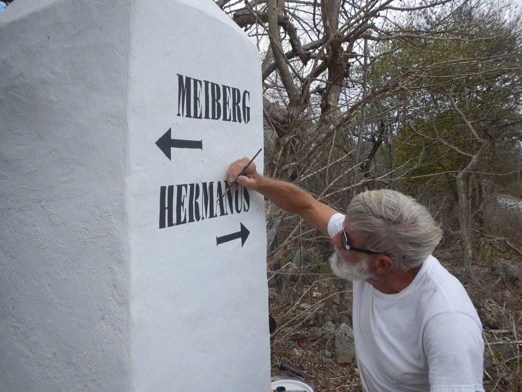Deze werd alweer een paar jaar geleden door Rensly Simon “por nada” opgeknapt en door mij geschilderd, maar toen bleek dat het niet mogelijk was om de (vermeende) oude aanduiding op de te ruwe ondergrond te plaatsen.