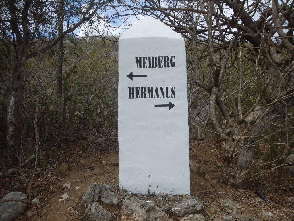 Het is aan vrijwilliger Herman Verboom te danken dat de tekst nu op de Meiberg / Hermanus grenspaal staat.